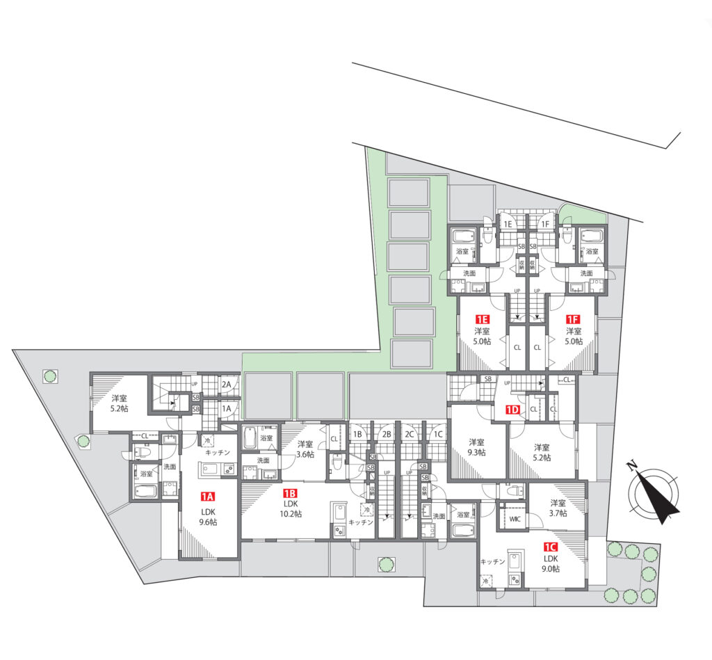 | 1A号室 | 34.98㎡ (10.58坪) | 1LDK | 賃貸中 |