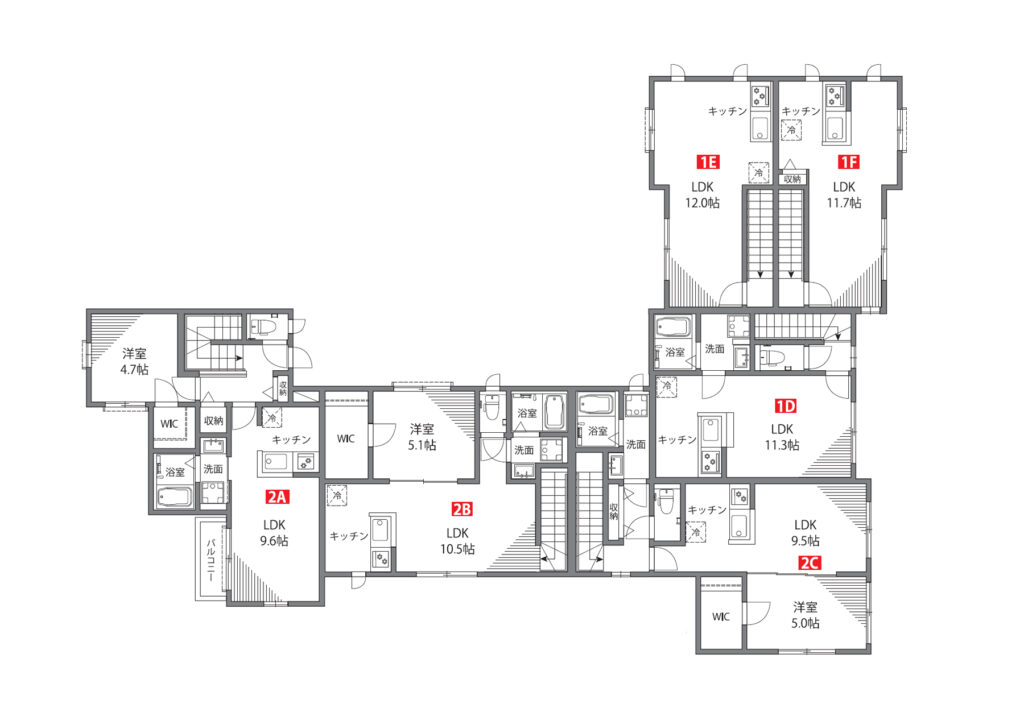 | 2C号室 | 48.02㎡ (14.53坪) | 1LDK | 賃貸中 |